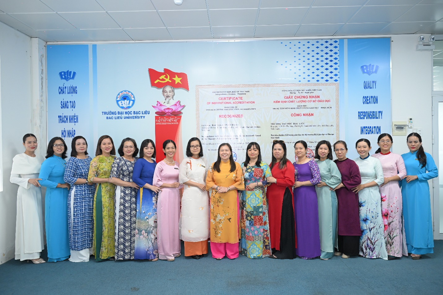Theo đó, trong thời gian từ ngày 02/3/2026 đến ngày 06/3/2026, các Cô đã lựa chọn trang phục áo dài khi lên lớp, tham gia các cuộc hoạt động và thực hiện các nhiệm vụ chuyên môn tại cơ quan. Hình ảnh tà áo dài truyền thống xuất hiện trong giảng đường và nơi làm việc đã góp phần tạo nên không khí trang trọng, tươi vui, đồng thời tôn vinh vẻ đẹp duyên dáng, thanh lịch của phụ nữ Việt Nam.