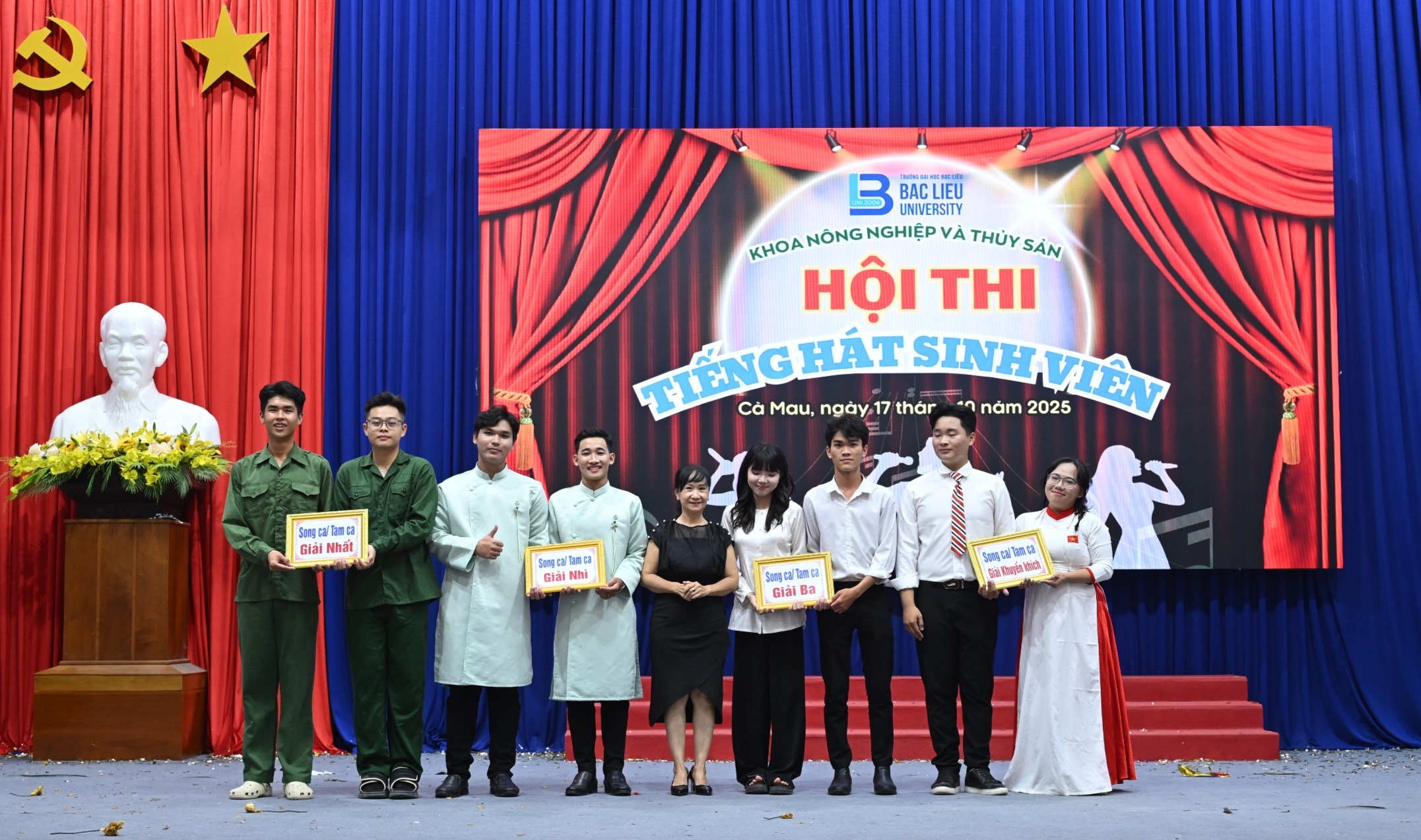 Vào lúc 18 giờ 00 phút, ngày 17 tháng 10 năm 2025, tại Hội trường lớn, Cơ sở 1, Trường Đại học Bạc Liêu, Khoa Nông nghiệp và Thủy sản đã tổ chức Hội thi “Tiếng hát sinh viên Khoa Nông nghiệp và Thủy sản” lần thứ II.