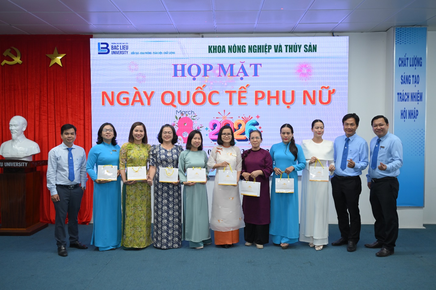 Nhân dịp kỷ niệm Ngày Quốc tế Phụ nữ 8/3, Khoa Nông nghiệp và Thủy sản, Trường Đại học Bạc Liêu đã tổ chức buổi họp mặt nhằm tôn vinh và tri ân những đóng góp của nữ viên chức đang công tác tại Khoa.