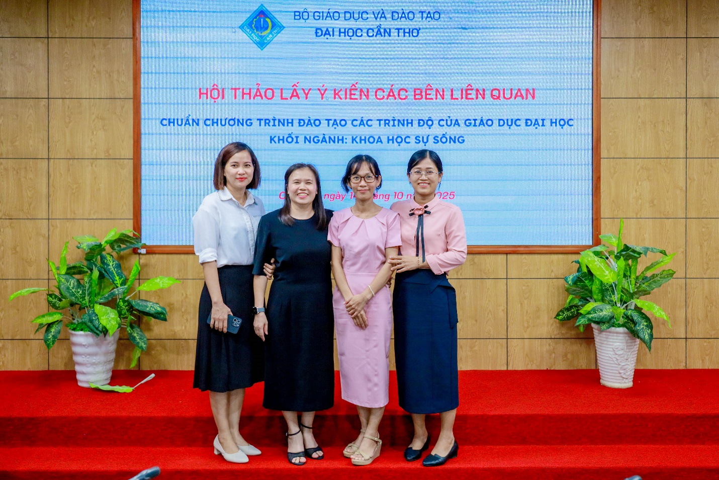 Ngày 14 tháng 10 năm 2025, đoàn giảng viên của Khoa Nông nghiệp và Thuỷ sản gồm TS. Nguyễn Thị Kim Xuân - Trưởng Khoa, TS. Trần Hồng Định, ThS. Trần Thị Bích Như và ThS. Phạm Thị Thắm đã tham dự Hội thảo lấy ý kiến các bên liên quan về chuẩn chương trình đào tạo các trình độ của giáo dục đại học khối ngành Khoa học sự sống.