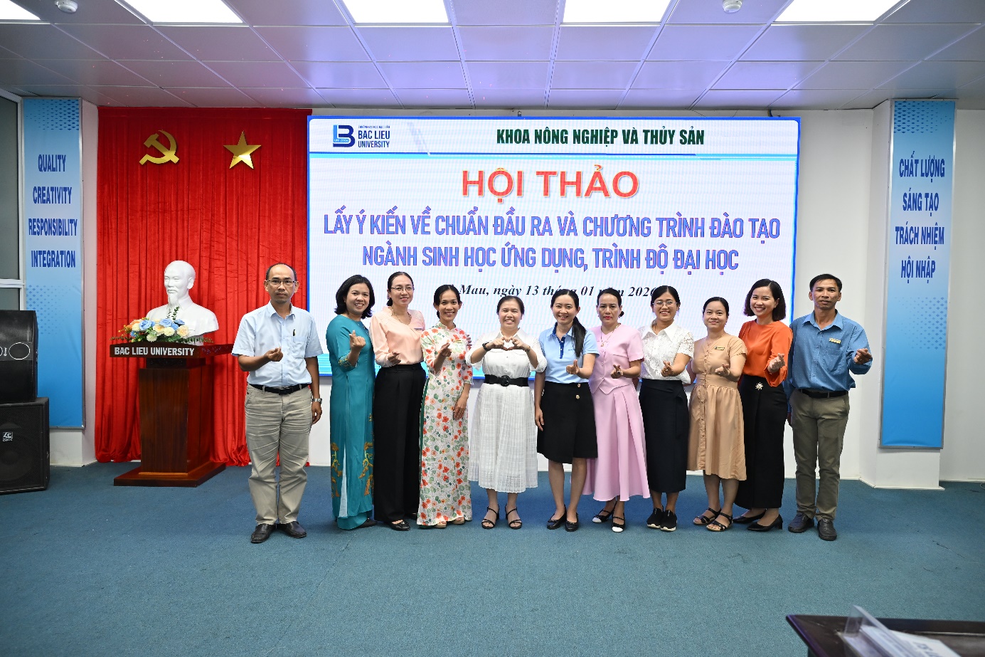 Sau hơn hai giờ làm việc nghiêm túc và hiệu quả, Hội thảo đã kết thúc thành công tốt đẹp. Những kết quả đạt được của Hội thảo là căn cứ quan trọng để Khoa Nông nghiệp và Thủy sản hoàn thiện CĐR và CTĐT ngành Sinh học ứng dụng để trình Hội đồng Khoa học và Đào tạo Trường Đại học Bạc Liêu xem xét, phê duyệt, phấn đấu đưa ngành Sinh học ứng dụng vào tuyển sinh và đào tạo trong thời gian sớm nhất./.
