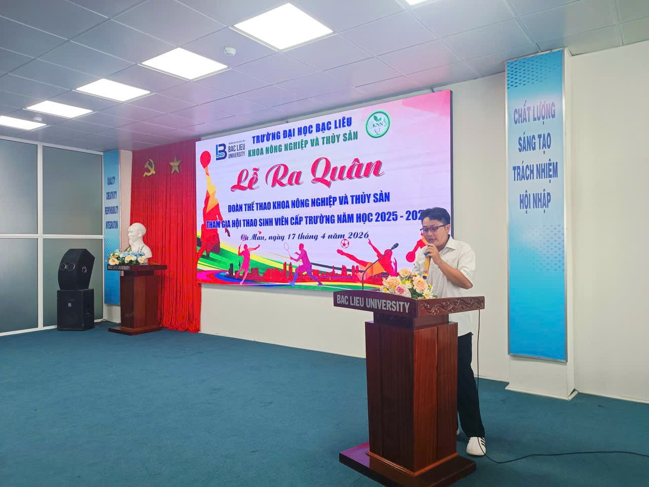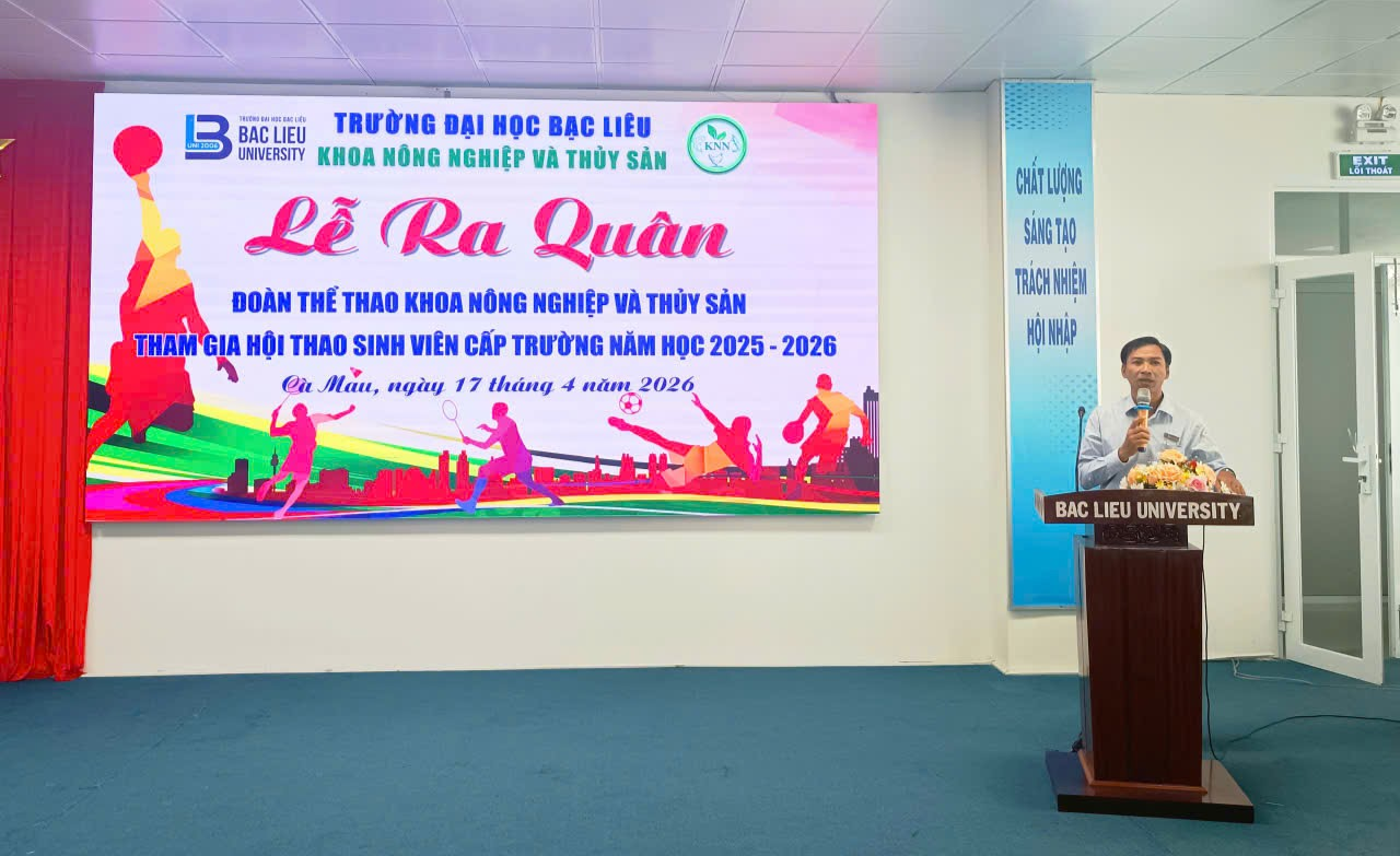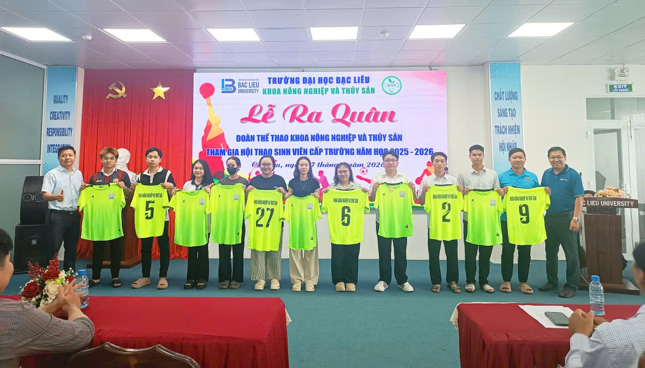 Hòa cùng không khí sôi nổi hướng đến Hội thao cấp trường năm học 2025-2026, Khoa Nông nghiệp và Thủy sản, Trường Đại học Bạc Liêu đã long trọng tổ chức Lễ ra quân Hội thao với tinh thần quyết tâm, đoàn kết và nhiệt huyết của tuổi trẻ.