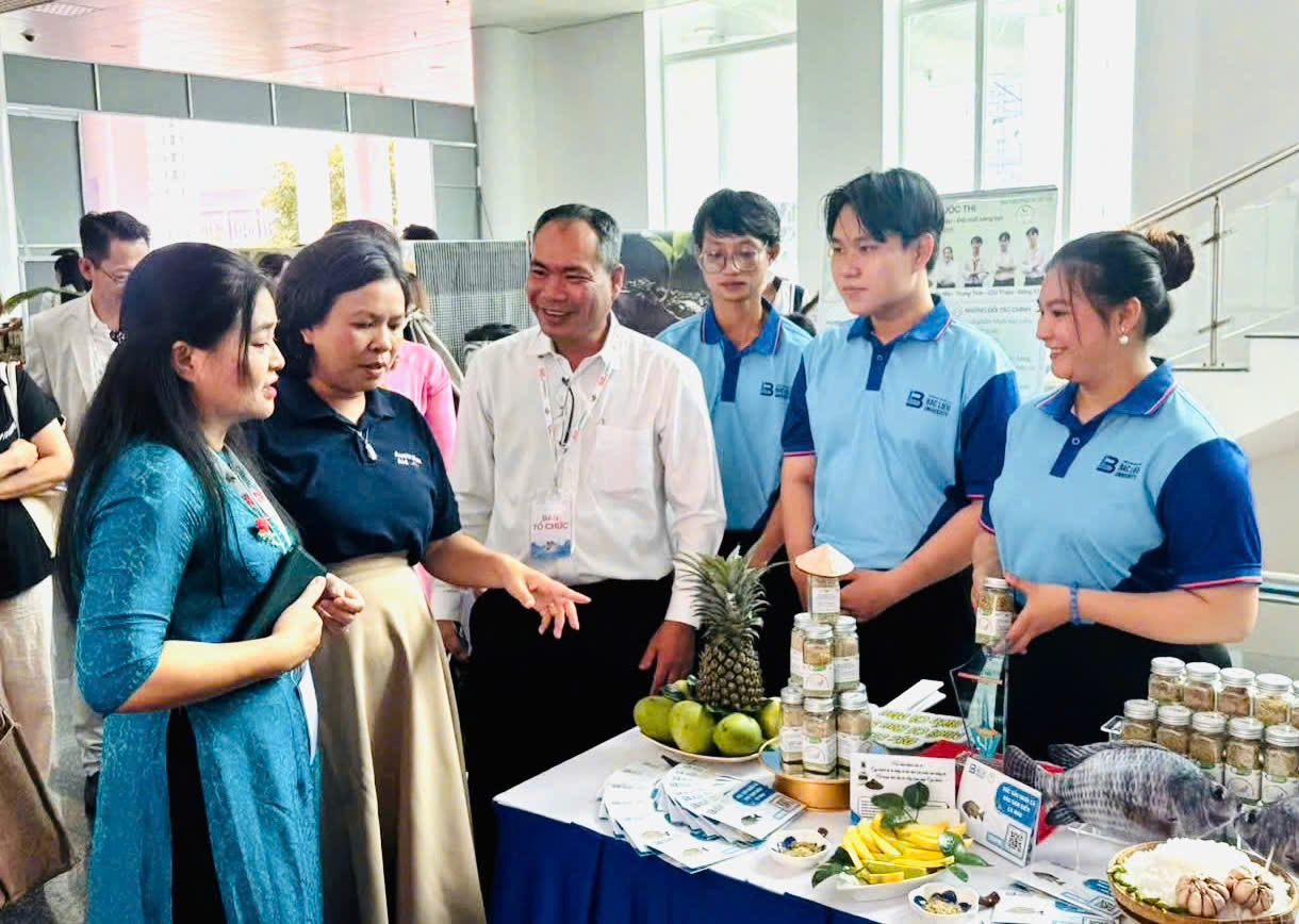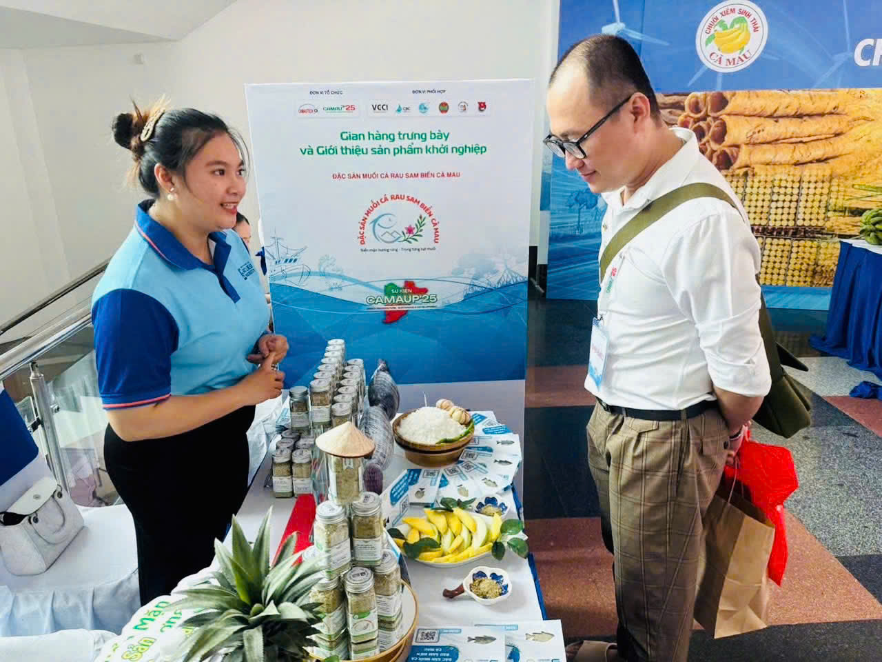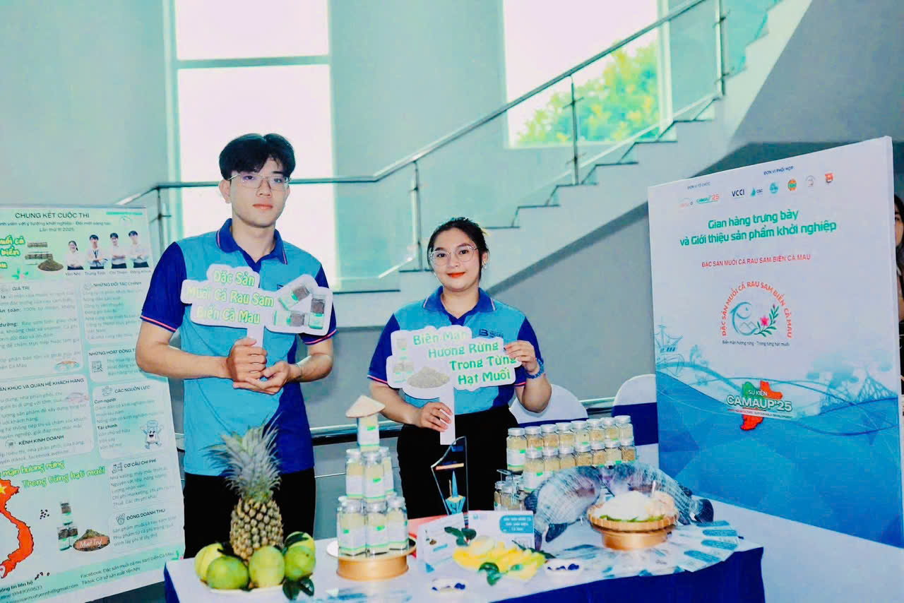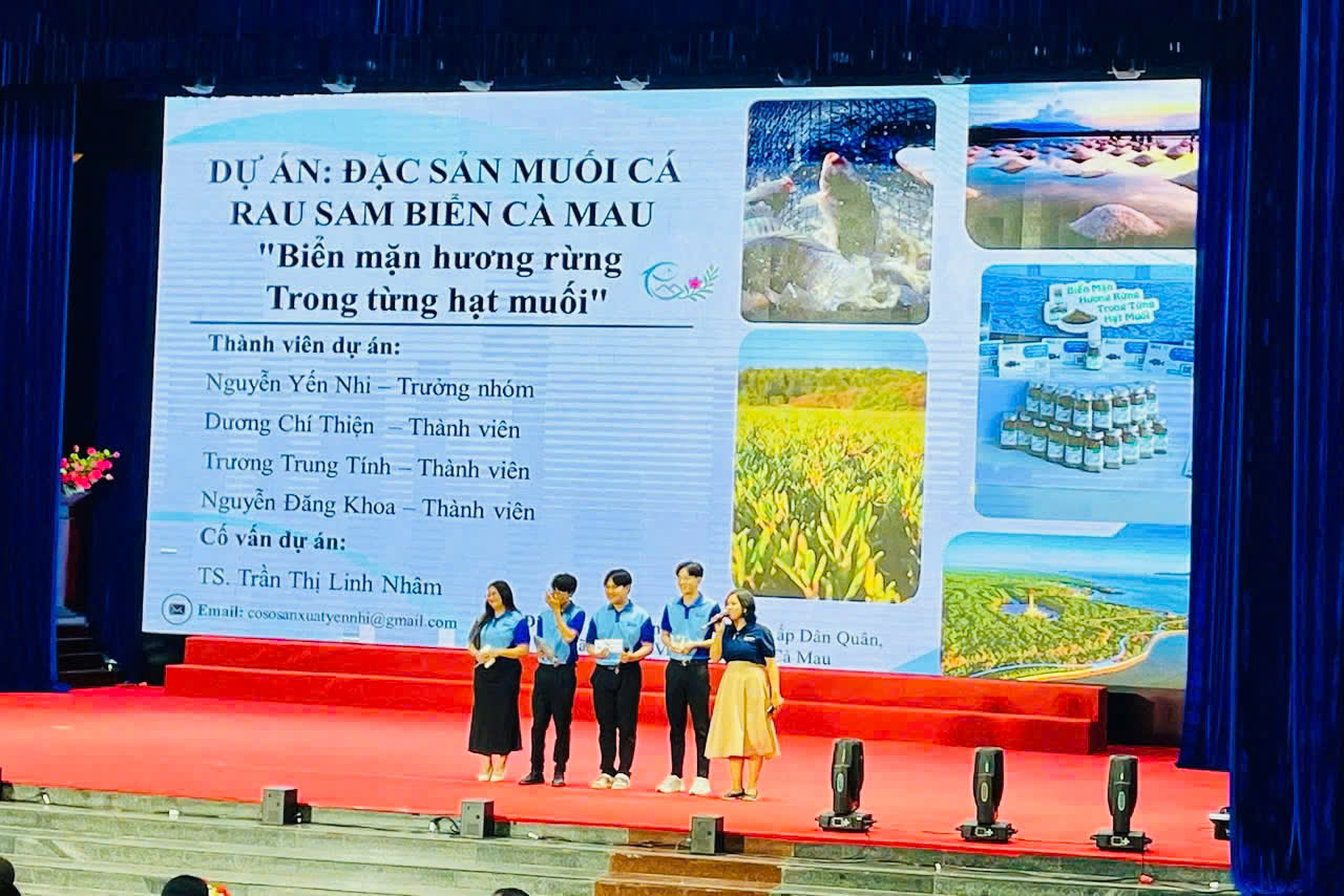 Tham gia sự kiện, nhóm sinh viên Khoa Nông nghiệp và Thuỷ sản vinh dự là 01 trong 30 đơn vị tham gia trưng bày, giới thiệu sản phẩm khởi nghiệp và pitching dự án kêu gọi đầu tư với dự án “Đặc sản Muối cá rau sam biển Cà Mau”. Nhóm sinh viên gồm 04 thành viên là sinh viên chuyên ngành Nuôi trồng thuỷ sản với sự hướng dẫn của TS. Trần Thị Linh Nhâm:
