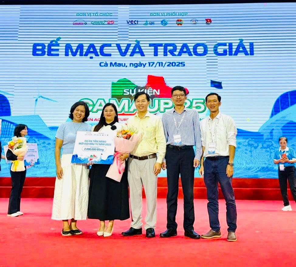 Tận dụng nguồn nguyên liệu bản địa như muối, cá rô phi và rau sam biển - những thành phần đặc trưng gắn với văn hóa ẩm thực địa phương - nhóm đã phát triển sản phẩm đặc trưng mang đậm nét văn hóa và hương vị truyền thống Cà Mau. Sự sáng tạo trong ý tưởng, tính ứng dụng của sản phẩm cùng phần thuyết trình tự tin và thuyết phục đã giúp dự án xuất sắc nhận giải thưởng Dự án tiềm năng mời gọi đầu tư năm 2025. Đặc biệt, dự án nhận được sự quan tâm và cam kết đồng hành và phát triển từ 02 nhà tư vấn của Ecotech và tổ chức Fundgo. Đây là thành quả đáng tự hào, thể hiện năng lực nghiên cứu, tư duy đổi mới và tinh thần khởi nghiệp của sinh viên Khoa Nông nghiệp và Thủy sản.