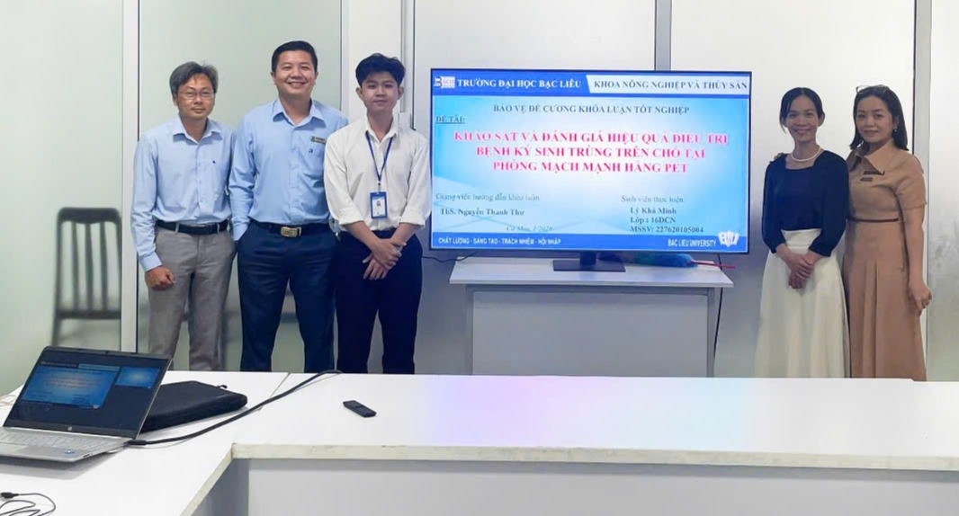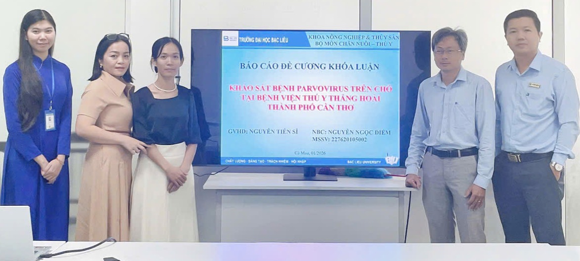 Vào lúc 7h30 ngày 24/12/2025, tại Phòng họp số 1, Nhà điều hành, Cơ sở 1, Trường Đại học Bạc Liêu, Khoa Nông nghiệp và Thủy sản đã tổ chức xét duyệt Đề cương khóa luận tốt nghiệp cho sinh viên khóa 16, ngành Chăn nuôi. Buổi xét duyệt được tổ chức với ba Hội đồng khoa học gồm các giảng viên có nhiều kinh nghiệm trong giảng dạy và nghiên cứu.